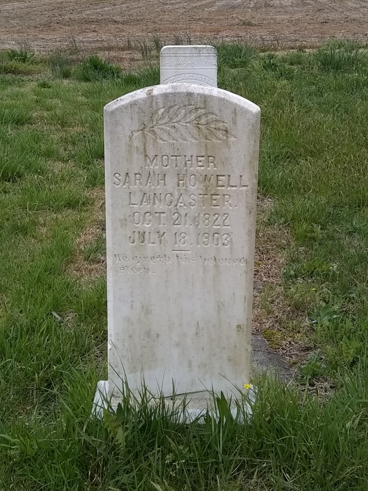 The headstone of my great-great-great-grandmother, Sarah (Howell) Lancaster (1822-1902), the wife of Levi Land Lancaster.
