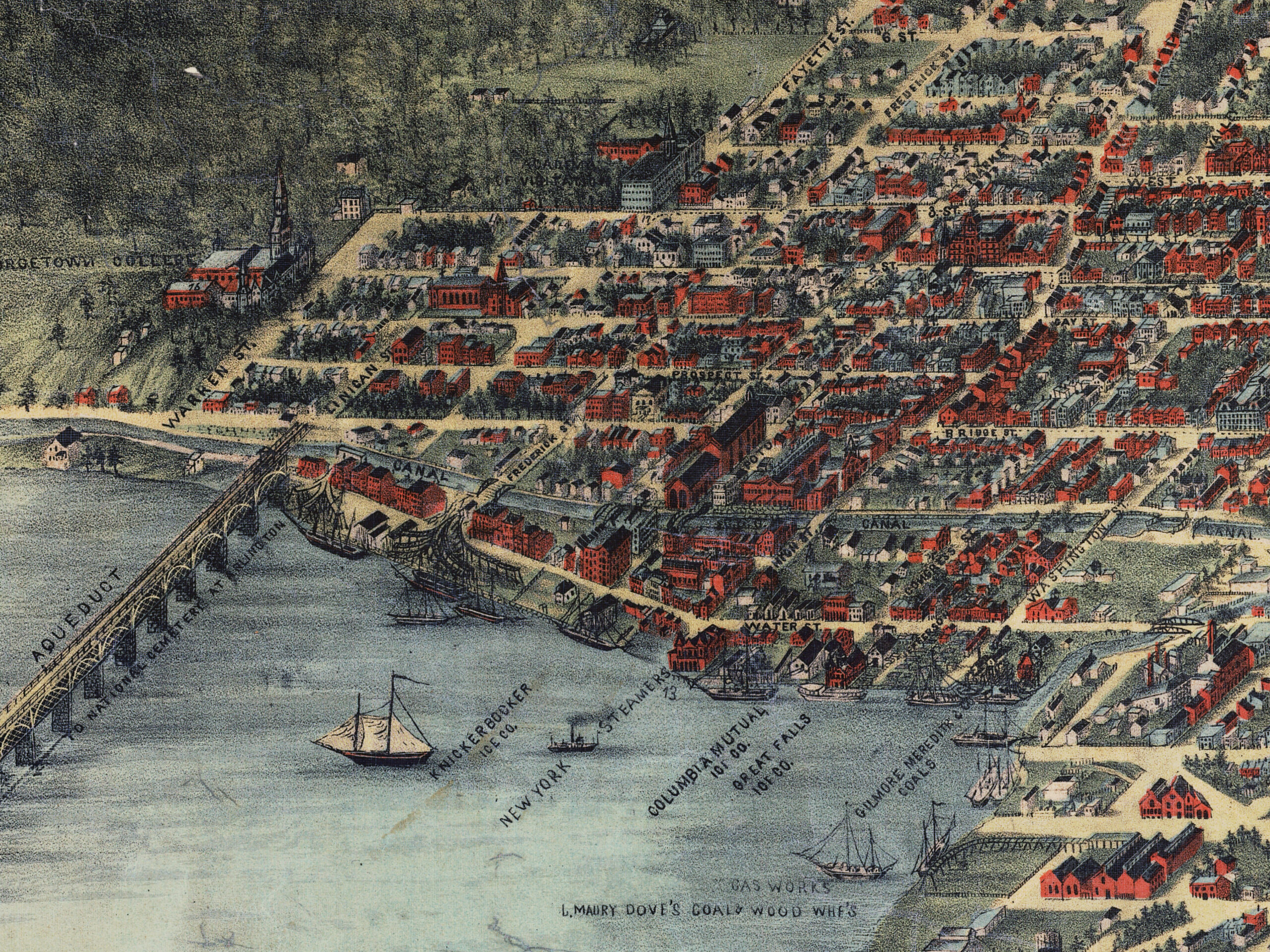 Detail of Georgetown in Adolph Sachse’s map of Washington, 1883.