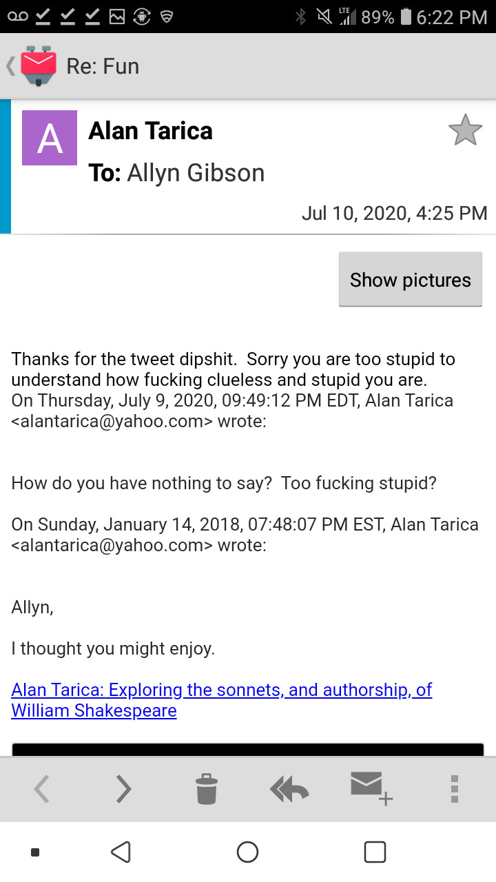 A even ruder and more insulting email from the same unknown correspondent, July 10th