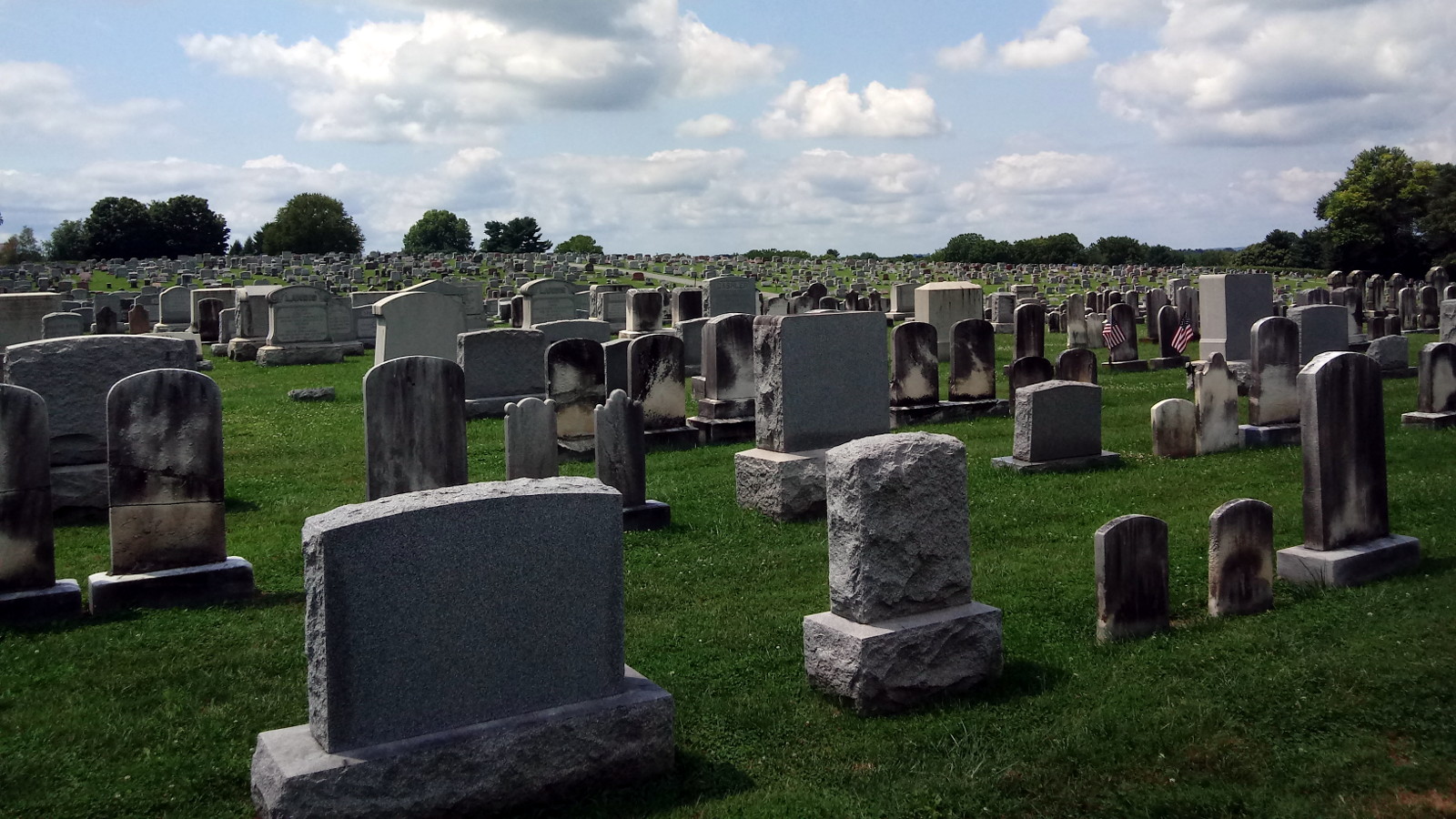 Looking northwest across the cemetery at the Millersville Mennonite Church