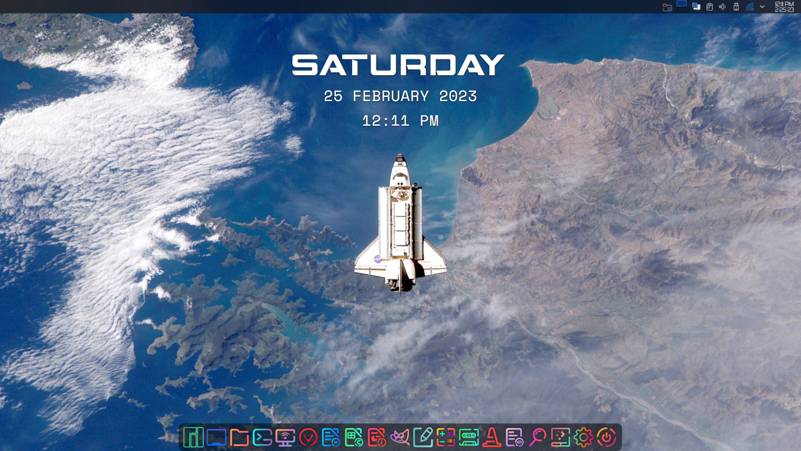Manjaro, with a wallpaper showing the space shuttle Endeavour over New Zealand
