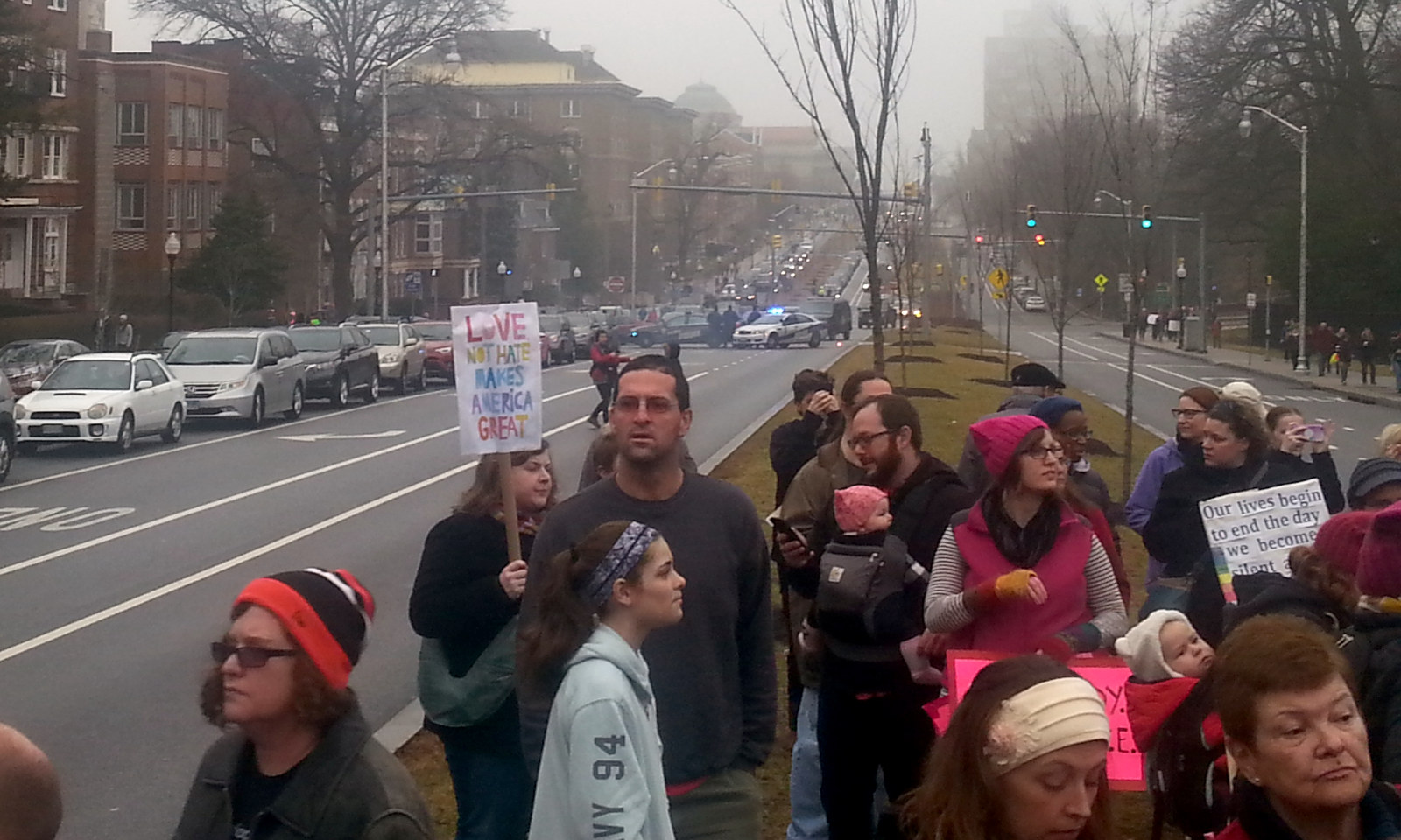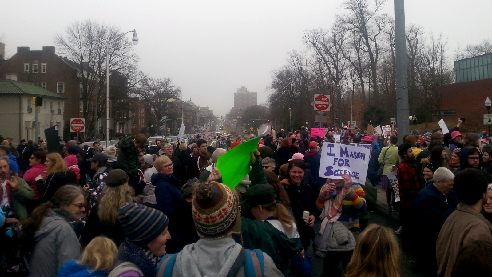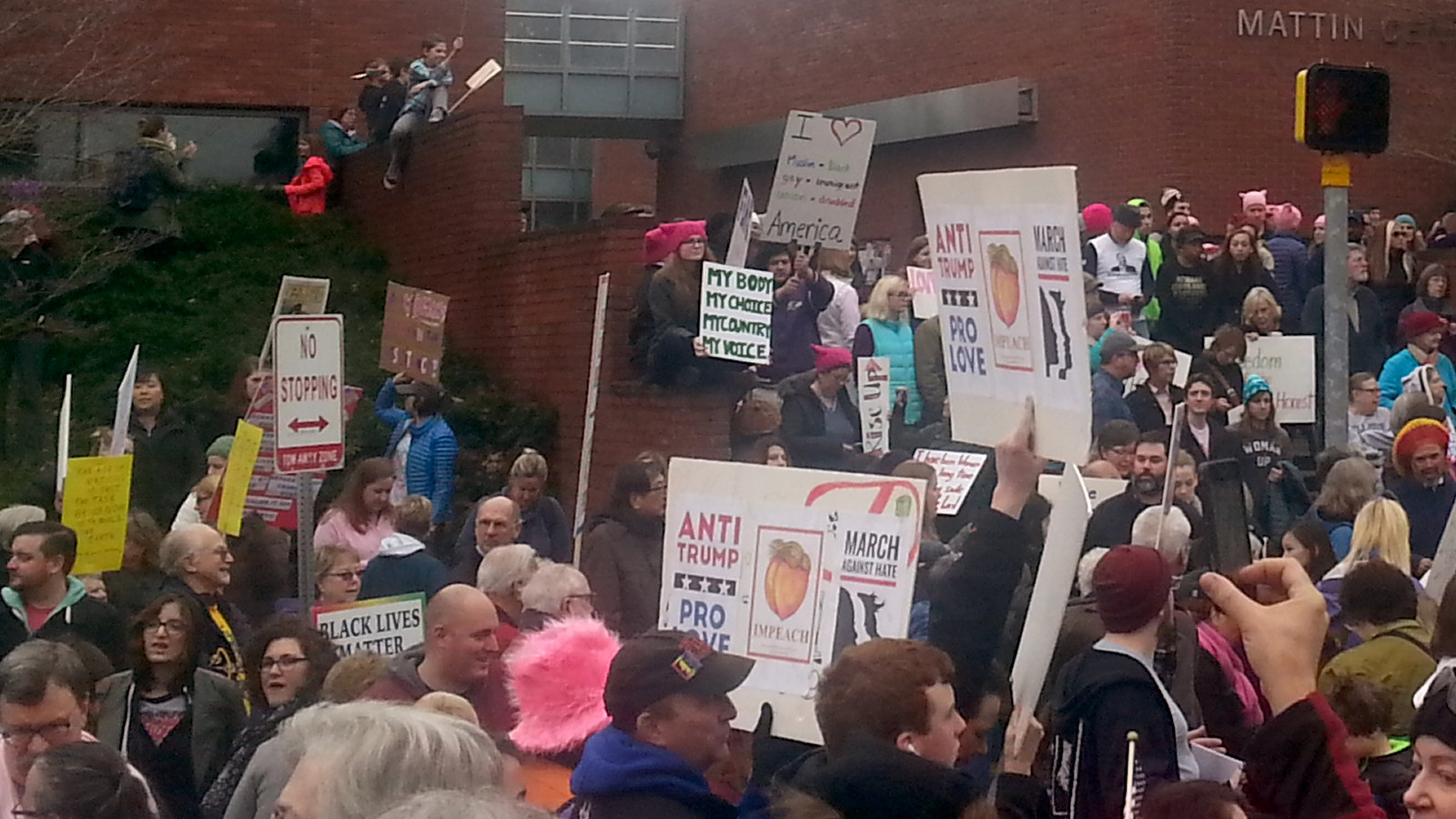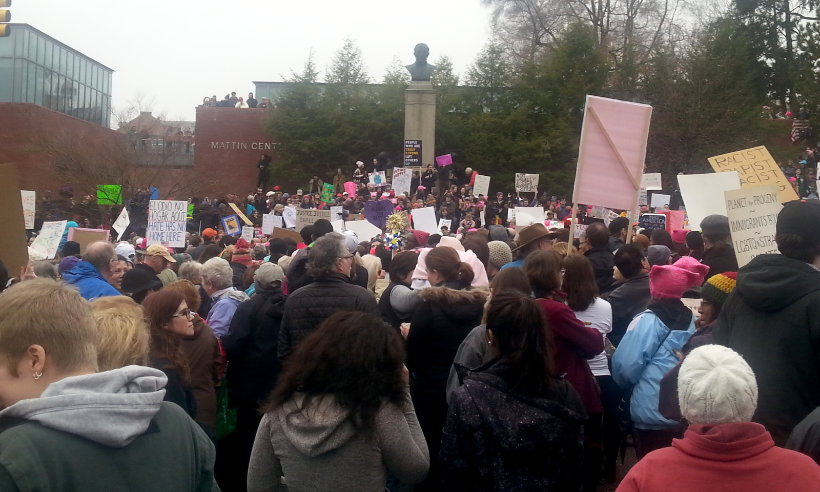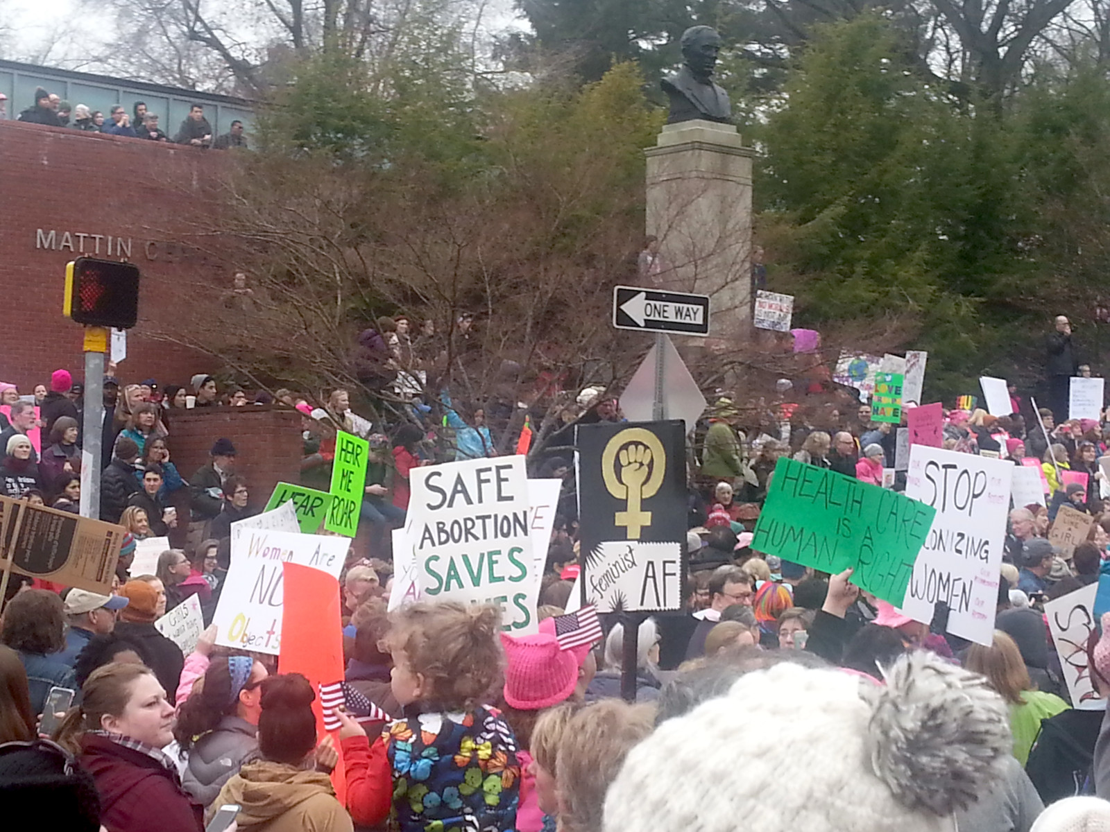 I thought, briefly, about going to the Women’s March in Washington. But I remembered the zoo that was Jon Stewart’s Rally for Sanity, and the idea passed. Then, last weekend, I took a look at the Women’s March website and saw that there was a sister march in Baltimore, in front of John Hopkins at 33rd and Charles. I didn’t RSVP for it on the website, but I kept it in the back of my mind as something I would do, weather permitting. Drive down from York, take the Light Rail into the city, walk to Hopkins, do the event, go home. That seemed like a sound plan.