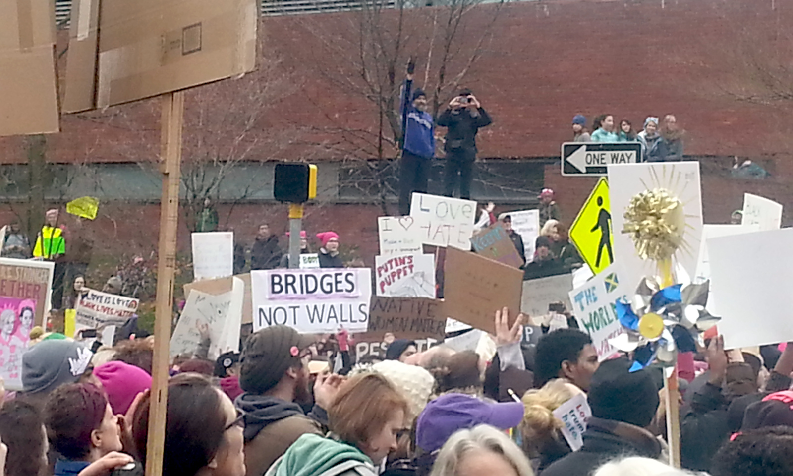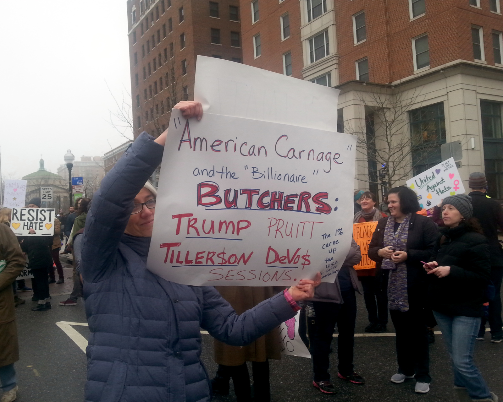 I can’t speak to what happened at other marches, either the main march in Washington or the marches around the world, as I wasn’t there. It is clear, as I write this, that the turnout for the Women’s March in DC vastly outnumbered the turnout for Donald Trump’s inauguration yesterday, despite whatever his press flack Sean Spicer says to the contrary, and around the world the total number of participants numbered in the millions, if not tens of millions.