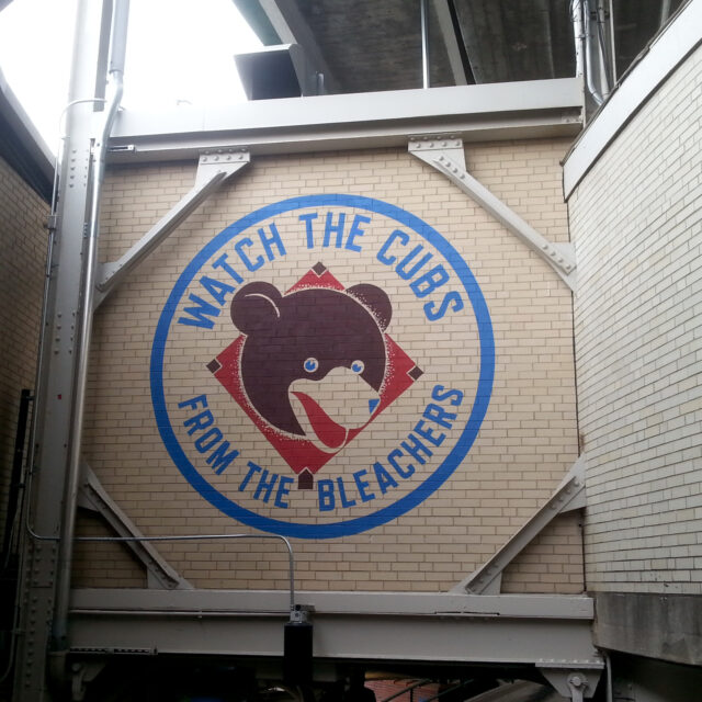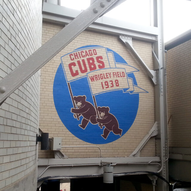 There was a mural behind the bleachers of the Cubs’ three World Champion logos — 1907, 1908, and 2016:
