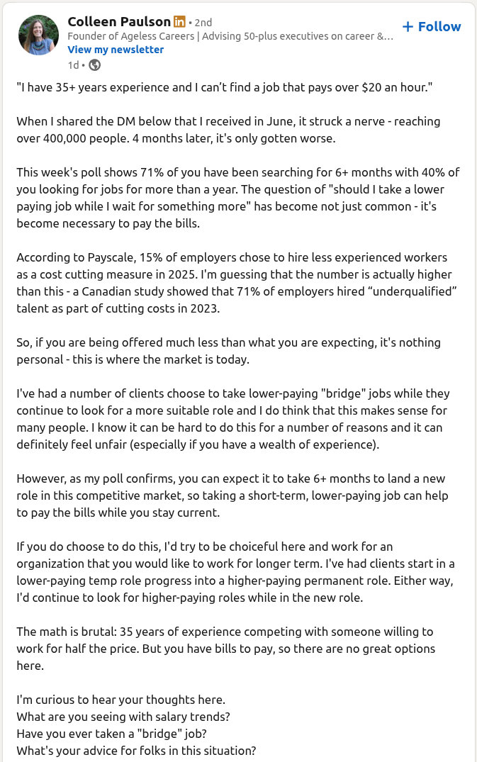“I have 35+ years experience and I can’t find a job that pays over $20 an hour.“