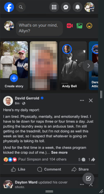 Unfortunately, Vivaldi, the mobile browser I use because it syncs with my desktop profile across multiple computers, does not do user agent spoofing natively. It does have a feature that will enable “Desktop Site,” but then Facebook renders in a tiny fashion, with what seems to be a normal desktop width (1600-plus pixels) but on a mobile screen. Facebook isn’t usable when you can’t read it!