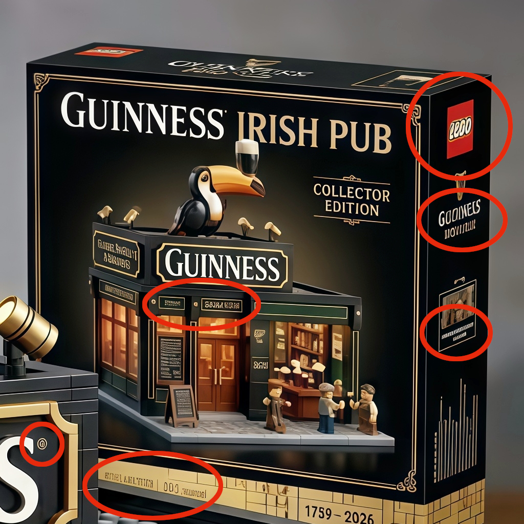 A LEGO-like set of an Irish pub! With Guinness branding! The toucan! The familiar saying! Pints of stout! Men in flatcaps!